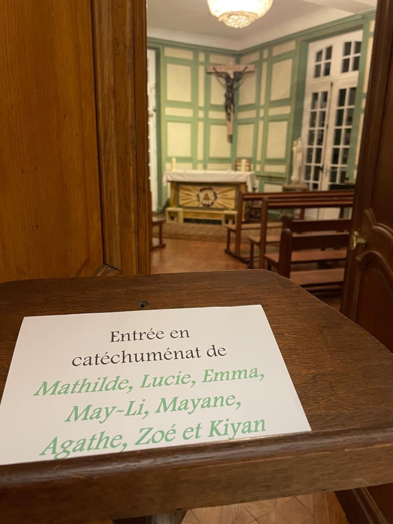 La chapelle du lycée a célébré, ce jeudi 29 janvier, à l’issue d’une journée de cours bien chargée, l’entrée en catéchuménat de huit de nos élèves. Cette année, c’est un groupe de treize jeunes qui a demandé à débuter ou reprendre un chemin de foi vers les sacrements au lycée Villa Pia.